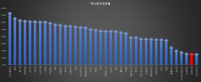 8월 13일을 기준으로 'OECD 꼴찌' 탈출해서 2차 접종률은 38개국 중 37위입니다. 신약개발이 보통은 10년은 걸리는데 '백신 주권' 찾겠다고 S-트리온과 K-백신 찾던지가 언제적인데 식약처가 공개한 임상 3상 계획서의 3,990명 중 피험자가 '달랑 93명'이라는 국산 백신은 언제쯤 나올까요? 전력으로 백신을 확보해도 모자랄 판에 국민들을 '끔찍히 생각한다는 분들부터' 시작하던가 "문재인 케어"와 "선진국 보다 낫다"면서 금방이라도 국산 백신 나올 것 마냥 자화자찬 중입니다.