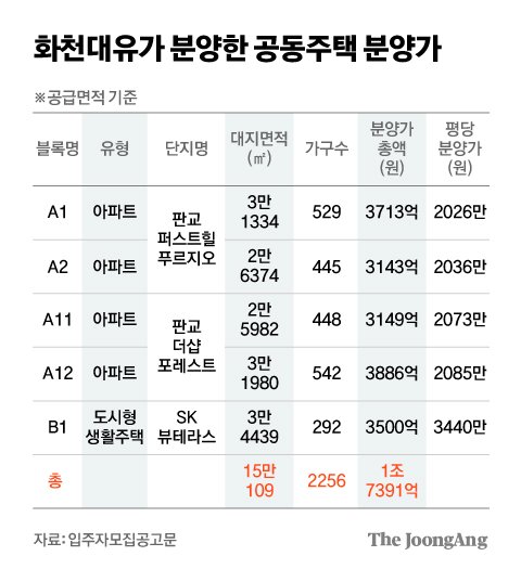 왜 그렇게 어릴적 부모님들이 "법대, 부동산" 노래를 불렀는지 깨닫게 만드는 화천대유는 토지 매각 차익, 이자 수익, 배당이익(4,040억원) 외에도 4,500억원 더 수익을 냈는데요. 수의계약을 통해 확보한 5개 필지로 아파트 등 공동주택 2,256가구를 분양해 1조 8,000억원의 매출을 올렸고 공사비 등 원가를 제외한 '분양이익은 4,500억원' 이상으로 국내 도시개발 프로젝트 역사상 '유래를 찾기 어려운' 고수익입니다.
