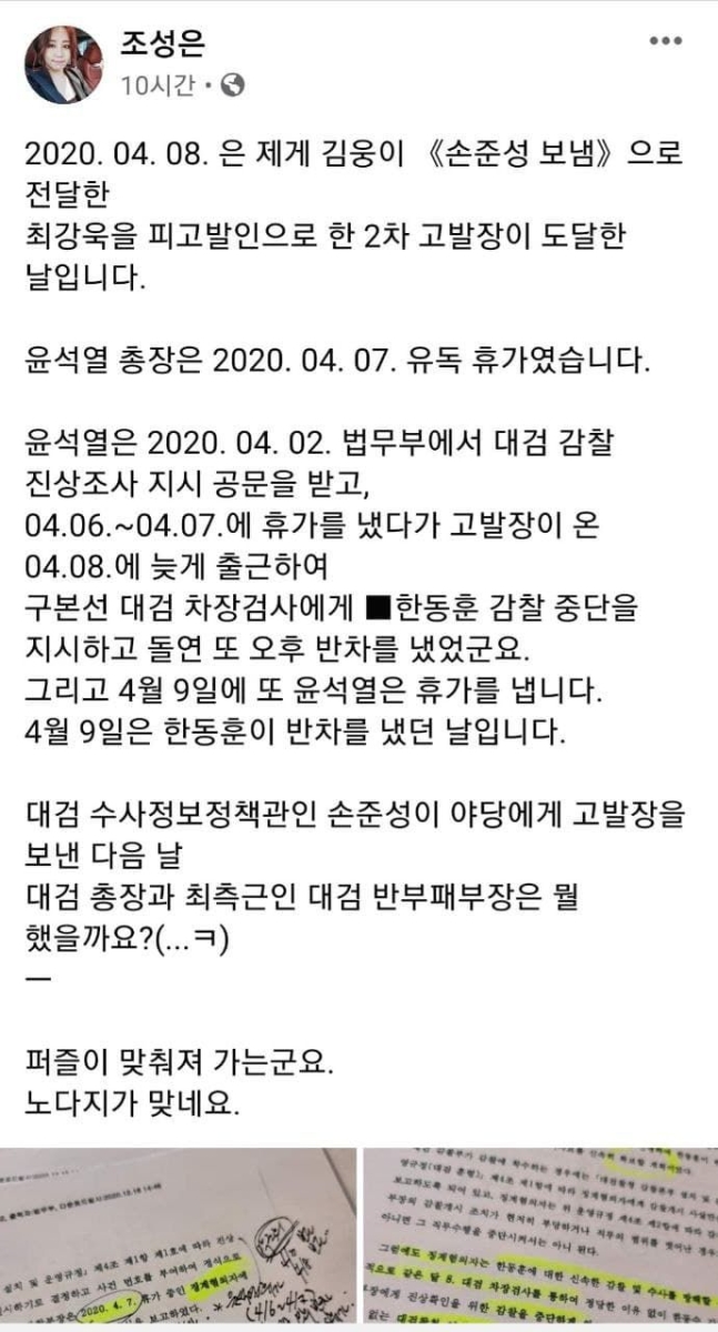 "우리 원장님" 명성에 '먹칠을 하는 중'인 '조성은 씨'가 또 사고를 친 것 같습니다. "작년 4월 윤석열 당시 검찰총장이 휴가를 내고 한동훈 검사장 등과 고발 사주를 논의했을 것"이라 "① 허위사실을 유포"했는데요.