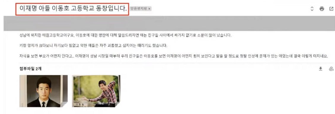 '군대, 입시와 부동산'은 3대 역린입니다. 이재명 후보가 "우리 아들은 공부 잘했다."고 말로만 하지 말고 "이참에 '보통 청년' '자랑도 하고'" 주장에 합당한 근거(① 이동호 씨가 '삼수인지 재수인지' 정확한 학번과 입학 연도 ② 해당 연도의 입시전형 ③ 수시 일반전형임을 입증할 고교 전 학년 생기부와 입시 서류)와 함께 이동호 씨가 직접 해명하는 등 청년들의 상대적 박탈감을 해소해줬으면 하는 바람입니다.