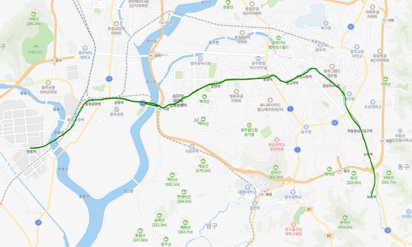 광주 지하철은 광주역도 안 가고, 터미널도 안 가고, 기아 챔피언스 필드(야구장)도 안 가고, 전남대도 안 가는데 '김대중 컨벤션 센터'는 갑니다.