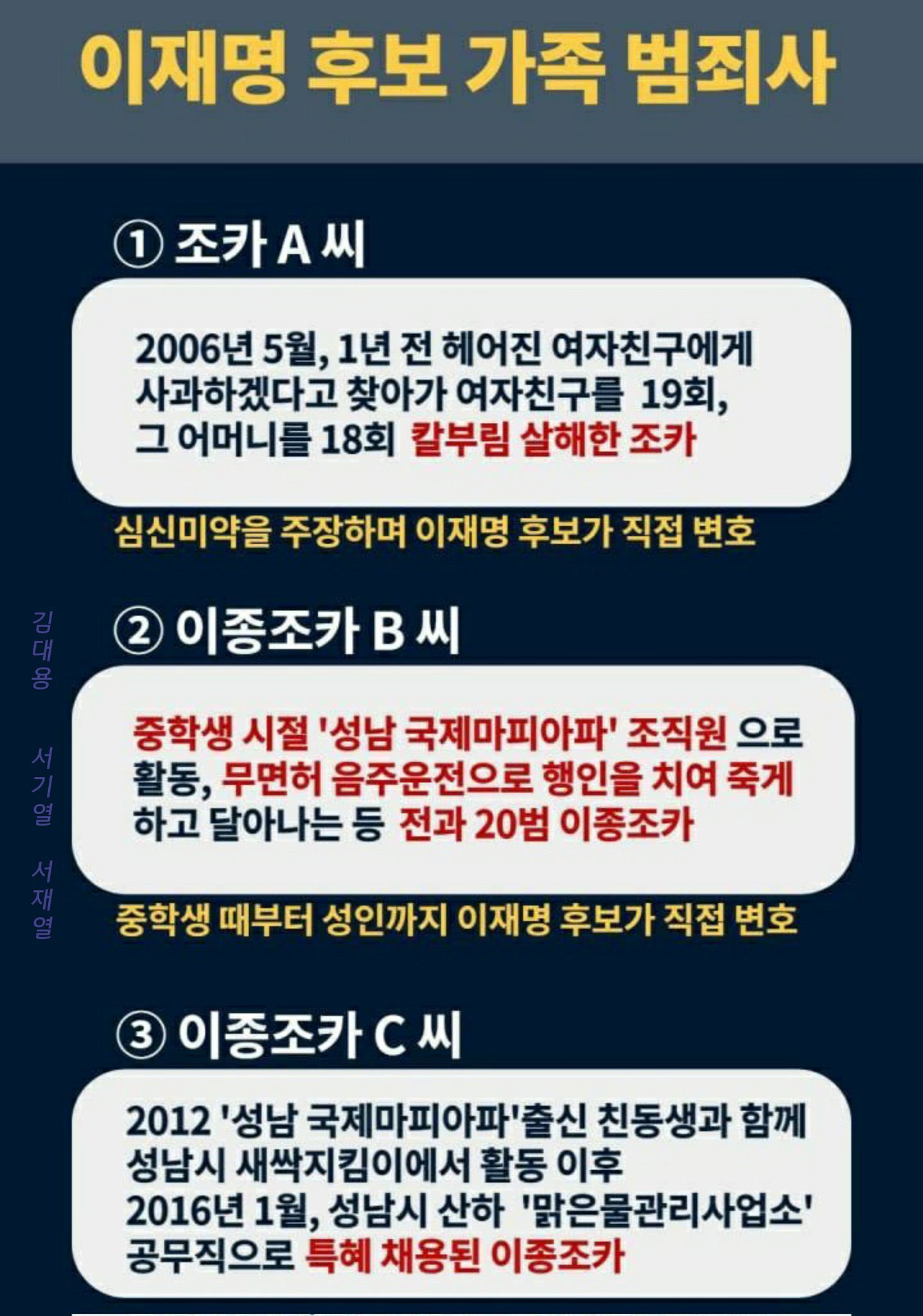 "또 '표정'관리 안된다'ㅋㅋ'" 1방적 스토킹에 헤어질 것을 요구하는 여자친구 집에 찾아가, "농약을 마셔라"니 "딸 앞에서는 못 마시겠으니 딸을 내보내 달라"니까 "아니다."며 여자친구, 어머니를 '회칼로 37방 난자'를 한 암사동 '모녀 살인 사건' 이재명 후보의 국제파 '에이스 칼잡이' 조카가 화두에 올랐는데요.