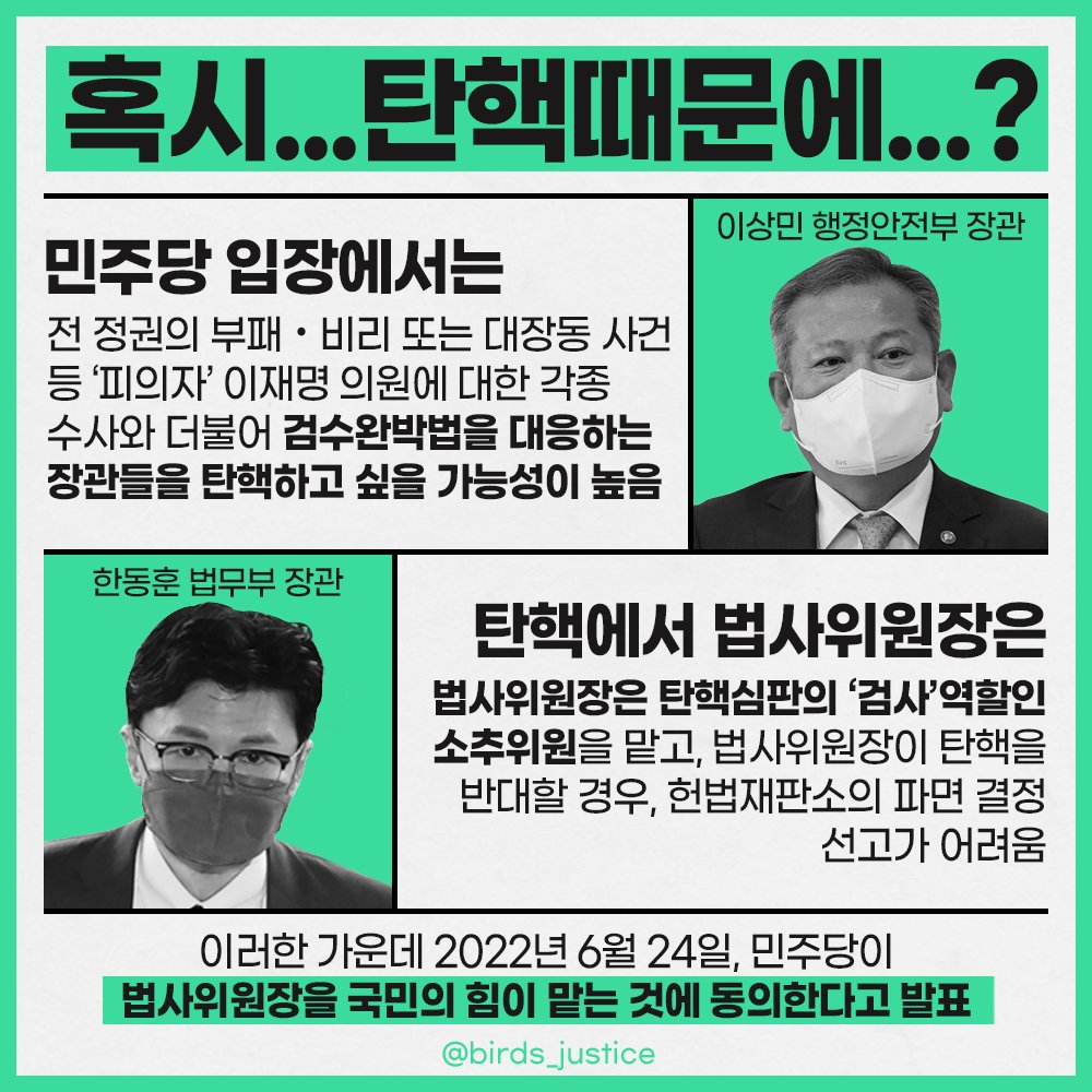 민주당 의원들은 법사위 가려고 하지도 않습니다. '김남국 이모, 최강욱 한국3M, 이수진 취권, 고민정 공감' 등 얼굴을 알리는데는 굉장히 좋지만, 당 이미지만 나빠지기 때문에 민주당 내에선 "김남국, 최강욱, 이수진 빼야한다" 소리까지 나오는 중으로 알려졌습니다.