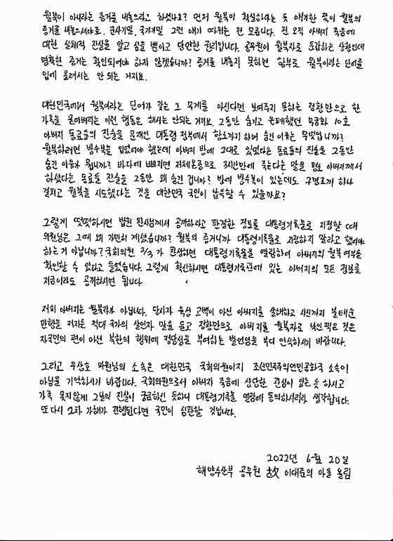 | 월북몰이, 2차 가해 중단하고 '대통령 기록물' 공개하라 (0) | 2022.06.19 |