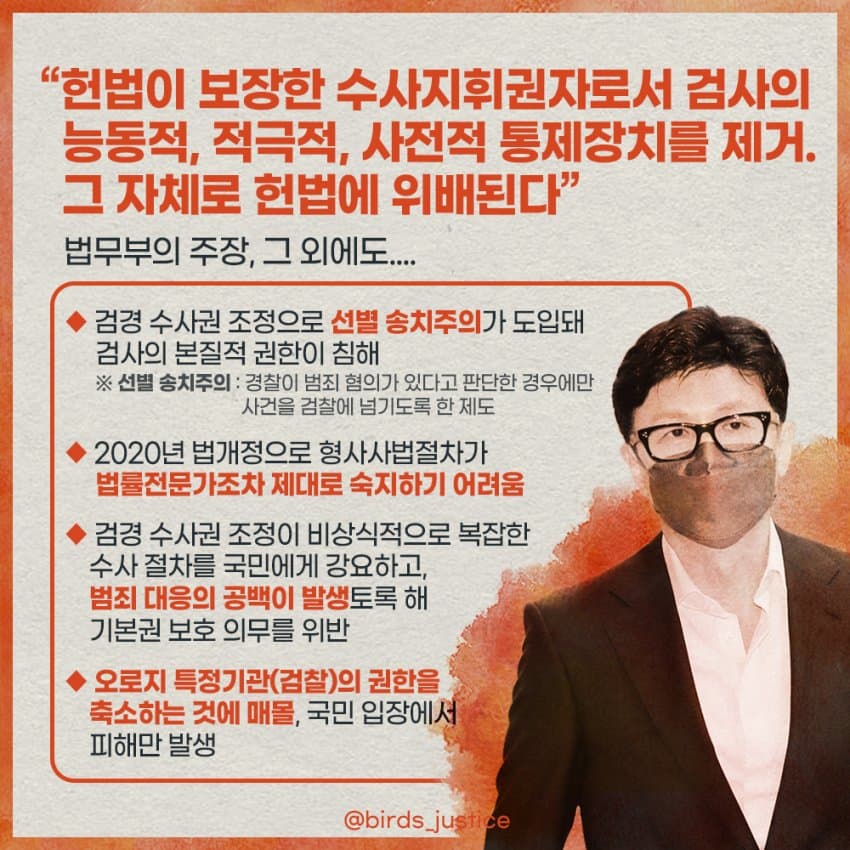 "첫째, 법안이 관련 법과 충돌하는지(체계, 體系)와 법안에 적힌 문구(자구, 字句)가 적정한지 심사하는 '체계·자구 심사권'을 빼라 둘째, 사개특위 명단을 제출하라 셋째, 검수완박 헌재소송을 취하하라"며 '검찰개혁 → 정권교체 → 검수완박 → 지선완박'까지 나고도 아직도 저러는 중입니다.
