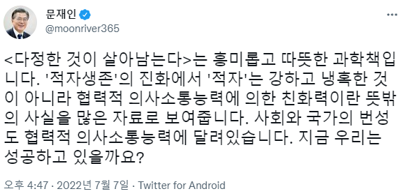 "뭐 했냐, 잤냐, 왜 안 구했냐"니까, 문재인 전 대통령이 놀라운 글을 남겼습니다. 첫째, 왜 월북 몰이에 대한 입장 표명이 없고 둘째, 코로나 19 백신 유가족들에게는 한 마디를 하지 않으면서 '뿌셔뿌셔, 컵라면, 블루베리'에 이어 할 소리인지 의문입니다.