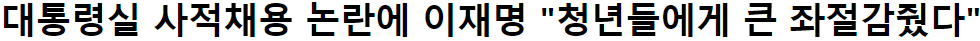 연구대상 이재명 씨가 사적채용 해명 논란에 "청년들에게 큰 '좌절감'을 줬다"고 했는데요. 한 민주당 관계자에 따르면, "아는 사람 쓰지 말라는 얘기냐"고 일침 했습니다.