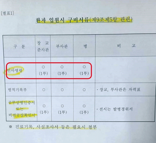 2014년 경남 진주 공군 교육사령부 기본군사훈련단 병사로 복무하던 당시 발목 인대 관절경 시술을 받았던 이동호 씨가 관할 지역이 아닌, 집 가깝고 아빠가 시장으로 있는 성남 소재 국군수도병원에 입원하려면 인사 발령이 나야합니다.