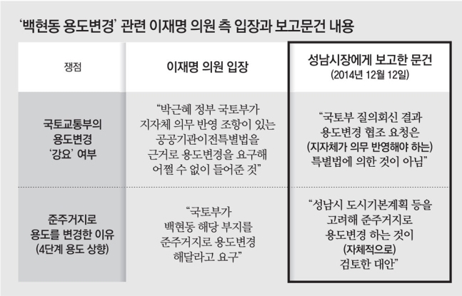 이 씨는 '또 거짓말'을 친 게 들통이 났습니다. "백현동 용도변경은 박근혜 정부가 법에 따라 요구해 불가피하게 응한 것이다"했지만, 성남시장 시절 허가한 분당구 백현동 개발사업의 용도변경이 성남시의 의무는 아니라는 보고를 직접 받은 것으로 확인됐습니다.