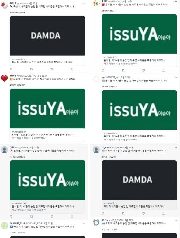 5. 박홍근 발언 이후 박근혜 정부 때 '십알단'을 연상시키는 SNS 계정들에서 의문의 숫자들만 다르고 똑같은 내용의 게시물이 동시에 올라오기 시작