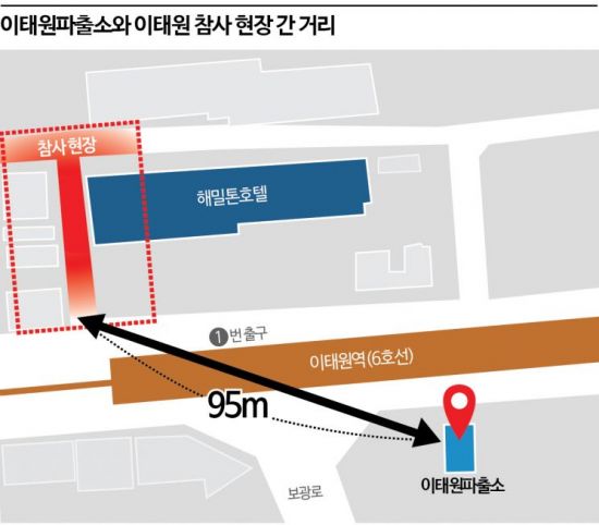 하지만 이임재 전 서장은 참사 당시 현장서 95m 거리에 있는 서울 이태원파출소 옥상에서 모든 상황을 지켜보고 있었는데, 육안으로 구별되는 참사 현장과 파출소는 걸어서 2분도 걸리지 않는 거리라 상황 파악이 즉시 가능함에도 1시간 넘도록 윗선에 보고하지 않은 것도 '미스터리'입니다.