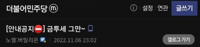 | 금투세 강행 민주당 금융시장 불안감 조장하나 (0) | 2022.11.09 |
