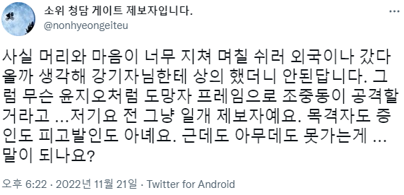 "① 50대 중후반 제보자가 남친이 아닌 스폰이다. ② 첼로녀가 오마이뉴스 시민기자랑 xx났는데 추궁 중 현직 대통령과 법무부장관 핑계를 댔고 그걸 또 녹취해서 제보했다."가 핵심입니다.