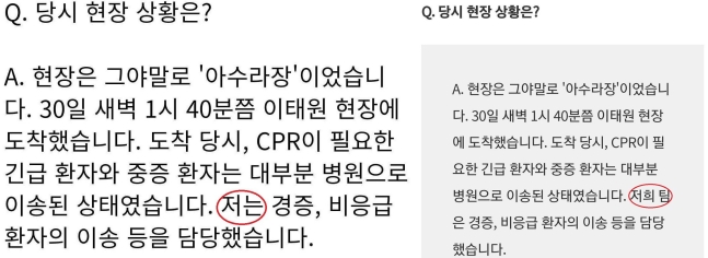 민주당 신현영 의원은 "아비규환의 현장에 있었다"면서 "현장에 도착해 바로 응급처치를 할 수 없었고, 경찰 컨트롤타워가 없어 눈치보면서 알아서 대처하는 사이 참사 희생자들은 숨을 거두고 있었다"고 '전문가'적 시각으로 이태원 참사를 회상했습니다.
