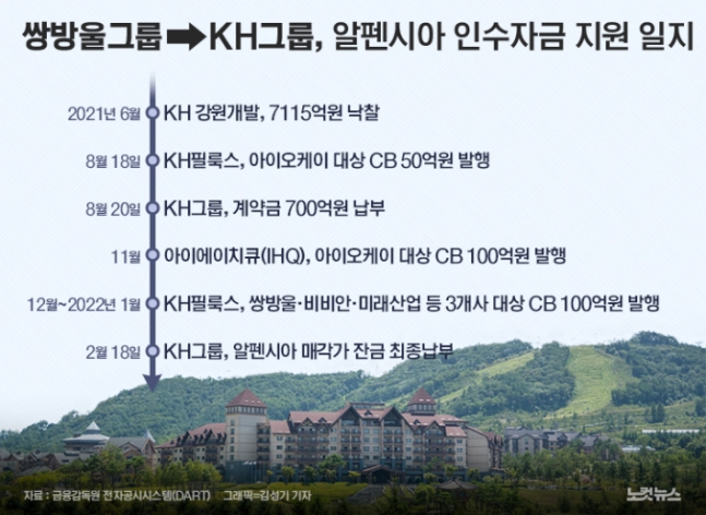대북송금 게이트, 이 씨를 1방에 보낼 변호사비 대납 뿐만 아니라 민주당 최문순 전 강원도지사가 연루된 '알펜시아' 리조트 벌떼 입찰 전에 전남 영광 신영광파 출신 KH 그룹 회장 배상윤 씨가 쌍방울로부터 자금 250억 원을 받은 것으로 파악됐습니다.