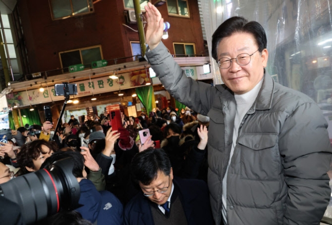 민주당 의원들이 설 명절을 앞두고 제작한 의정활동 보고서에 "얼굴 사진은 커녕 이재명의 '이' 자도 안 넣는다는 민주당 대표 이재명 씨의 호소가 서울 마포구 망원시장에 울려 퍼졌다는데요.