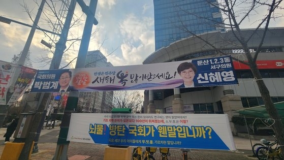 설날을 앞두고 정치인의 현수막이 곳곳에 내걸리는 중입니다. 친명계 '현근택'(변호사) 민주연구원 부원장은 NY(이낙연)계 윤영찬 의원 지역구인 성남시 중원구에 현수막을 내걸었습니다.