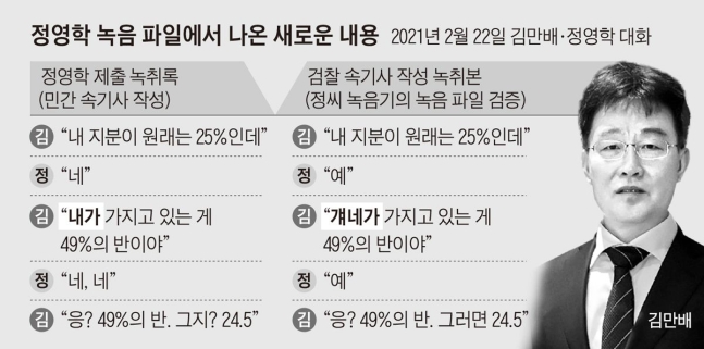 대장동 사건을 수사 중인 검찰이 2021년 말 '정영학 녹음 파일'을 검증하면서 당시 정영학 회계사(천화동인 5호 소유주)가 민간 속기사를 시켜 만들어 제출했던 '정영학 녹취록'에 없는 내용이 발견 돼 '부실 수사'를 한 것으로 확인됐습니다.