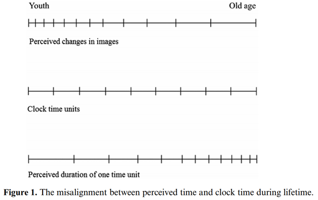 나이가 들수록 감각 수용기들이 노화하고 신경망이 둔해져 뇌에서 인지하는 량이 줄어드는 와중에 경험까지 쌓이면서 새로운 신경 세포를 생성하는 경험은 줄고 반복되는 일상에 뇌가 반응하지 않음으로 시간이 빨리가는 것 같은 느낌을 받습니다.