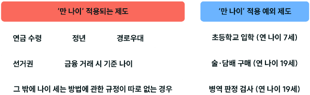 오늘부터 '만 나이'를 쓰는데요. 나이가 불혹이 넘었는지 「 '계산'하는 '방법' = 현재 연도 - 출생 연도 - 생일이 지나지 않았을 경우 - 1 」 인데 초등학교 입학, 술·담배 구매, 병역 판정 검사, '공무원' 시험은 기존 연 나이로 계산됩니다.