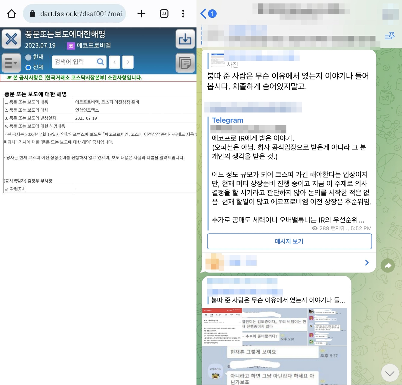 밧데리교 재야의 '에코프로' 형제님들의 '허위사실' 유포와 더불어 '반도체 괴담'을 퍼트리는 가운데 코스피 상장 이전 소식에 주가 상승으로 인한 매수세 유입과 숏 스퀴즈가 발생을 한 에코프로(PER 781), 엘앤에프(+17.47%), 에코프로비엠(+10.4%) 형제님들의 주가가 급등을 했는데요. 하지만 정작 풍문 보도 해명 관련 공시에서 검토 중으로 공시를 했는데 그 과정이 '의문'스럽다는 불만이 쏟아졌습니다.