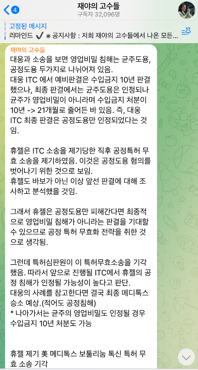 요즘 아무나 붙잡고 저질르는 '묻지마 범죄'가 사회적 논란인 가운데 '어준이'가 지속적이고 장기간 동안 "대웅 제약이 영업비밀을 침해했다"는 중인데요. 이와 관련한 입장을 요청한 결과 '대웅제약' 측은 "전혀 사실무근"이라며 선을 그으면서 양사 경영진이 만난 정황에 대한 구체적인 근거가 제시되지 않았는데, 대웅제약에서는 리포트 오류와 관련한 공문을 보낸 적 있으나 경영진간 만남은 없었다고 토로했습니다.