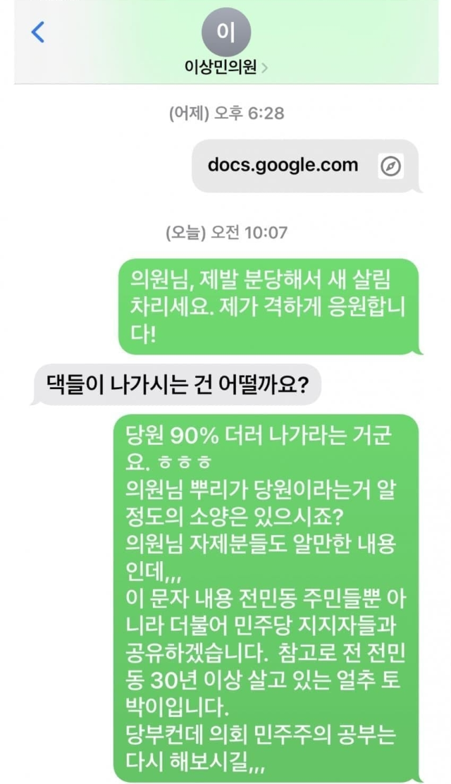 '박광온' 원내대표와 '송갑석' 최고위원을 사냥하듯 쫓아내고 임시 당대표 권한 행사를 한 정청래 씨는 비명 숙청을 예고하고 "분당할 용기도 구심점도 없다"라며 비명계 '조롱'을 했는데요. 친명계 핵심 원외 조직은 김종민‧이원욱‧조응천‧이상민‧설훈 의원의 실명을 거론하며 이 씨 체포동의안 표결에서 "가(可)를 적어 내 해당 행위를 했다"며 "'출당' 시켜야 한다"라고 했습니다.