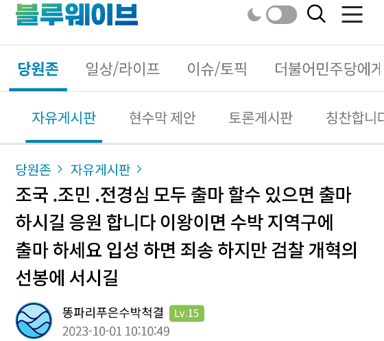 '이 씨'는 조 씨에 대해 "내로남불로 '공정성을 훼손'했다"면서 "민주당이 국민들로부터 외면받고, 비판받는 문제의 근원 중 하나"라며 "국민께서 내로남불적인 태도에 실망했기 때문에 국민의 실망과 기대를 채우지 못한 건 채워야 한다"면서 "잘못을 인정하고 사과를 해야 한다"라고 했습니다.