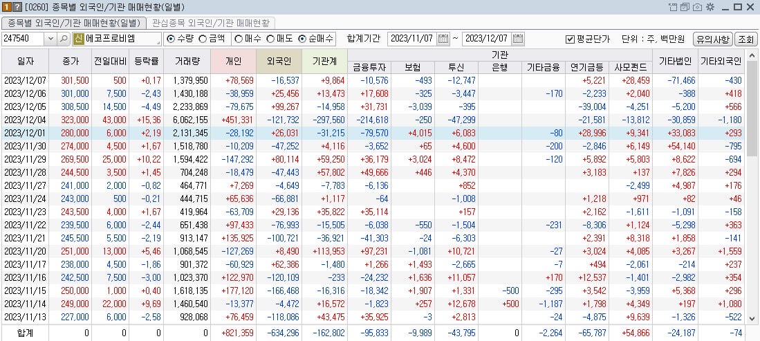 12/1 저녁 43조 수주 공시 직전 기타법인이 10만주가량 순매수하고 오늘까지 해서 다 팔고 나간 것으로 추정해볼 수 있겠습니다.