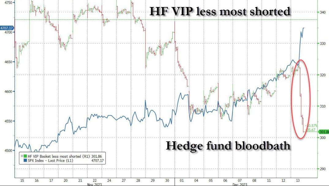 미국 지수들의 급등과 다우 신고가가 이뤄지는 동안 가장 인기 있는 숏바스켓은 7배 더 급등을 했습니다. 헷지펀드들에게 인기 있는 Proxy Tracker인 GS의 HF VIP less Most Shorted Basket은 오늘 6% 이상 하락하며, 2001년 6월 이후 가장 큰 하루 손실 기록했는데요.