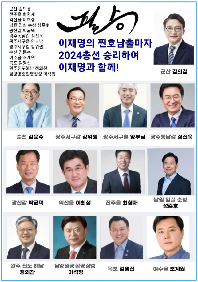 더불어민주당 텃밭 호남에서 광주 '5개 선거구'를 대상으로 실시한 여론조사 결과 현역의원들이 고전하고 '친명계' 인사가 약진하는 것으로 집계됐습니다. 3개 지역구 현역 의원이 당내 경쟁자에게 밀리는 것으로 나타났습니다.