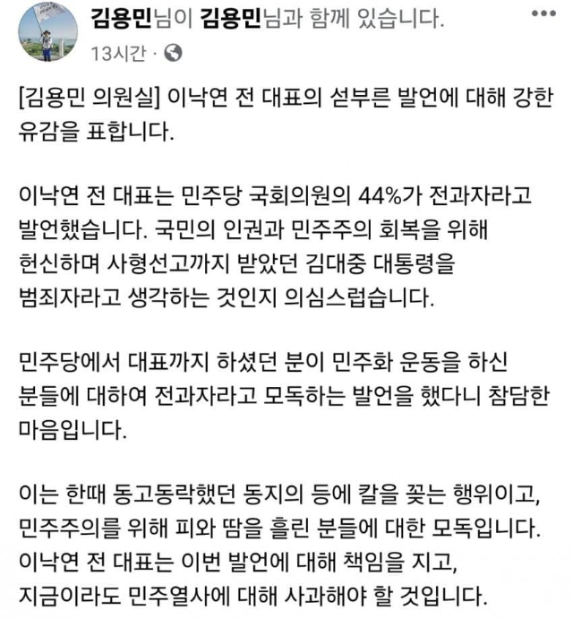 원칙과 상식 4인 방 중에 이원욱, 김종민, 조응천 의원이 10일 탈당을 선언했습니다. 원래 윤영찬 의원까지 네 명이지만, 윤영찬 의원은 기자회견 직전 '잔류' 의사를 밝히면서 이탈을 했는데요. 그렇게 당하고도 이재명 씨를 너무 모르니까 '친명계'한테 '백전백패'였던 것 같습니다.
