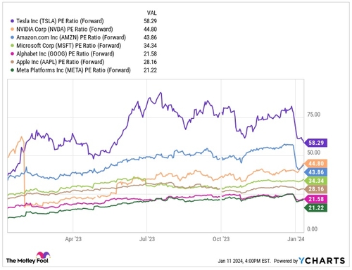 투자 전문 매체 모틀리풀은 현재 주가를 앞으로 1년간 예상 주당순이익(EPS)으로 나눈 12개월 선행(포워드) PER(주가수익비율) 그래프를 통해 테슬라의 선행 PER은 최근 많이 내려왔음에도 58배 이상으로 형성됐다고 했습니다.