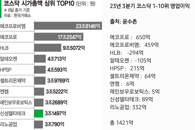 초전도체 테마주 신성델타테크가 코스닥 시총 9위입니다. 30%정도 더 오르면 '무슨 일?'이 생길지도 모릅니다. 4분기는 더 절망이니 계산 안 해도 되구요. 코스닥 포함 고평가 밈(meme) 주식들은 하루빨리 밸류다운을 해야 국민들이 피해를 덜 볼 겁니다.
