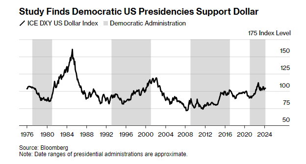 저러고 요새 '뭐 하고 있죠?' 우연히 만난 여성을 '성폭행'한 죗값 치를 돈은 없는데 사기 대출 벌금은 못 내겠다고 전직 대통령 특혜를 받고 '트루스 소셜'에 "God Bless the USA Bible"이라는 성경책을 팔고 있습니다. 지난 40년간의 데이터를 분석한 연구 논문에 따르면, 미국 대선과 달러 가치 사이에 강한 연관성이 있습니다. 민주당이 집권했을 때 달러는 4.2% 상승한 반면 공화당이 집권했을 때는 1.3% 하락한 것으로 나타났습니다.