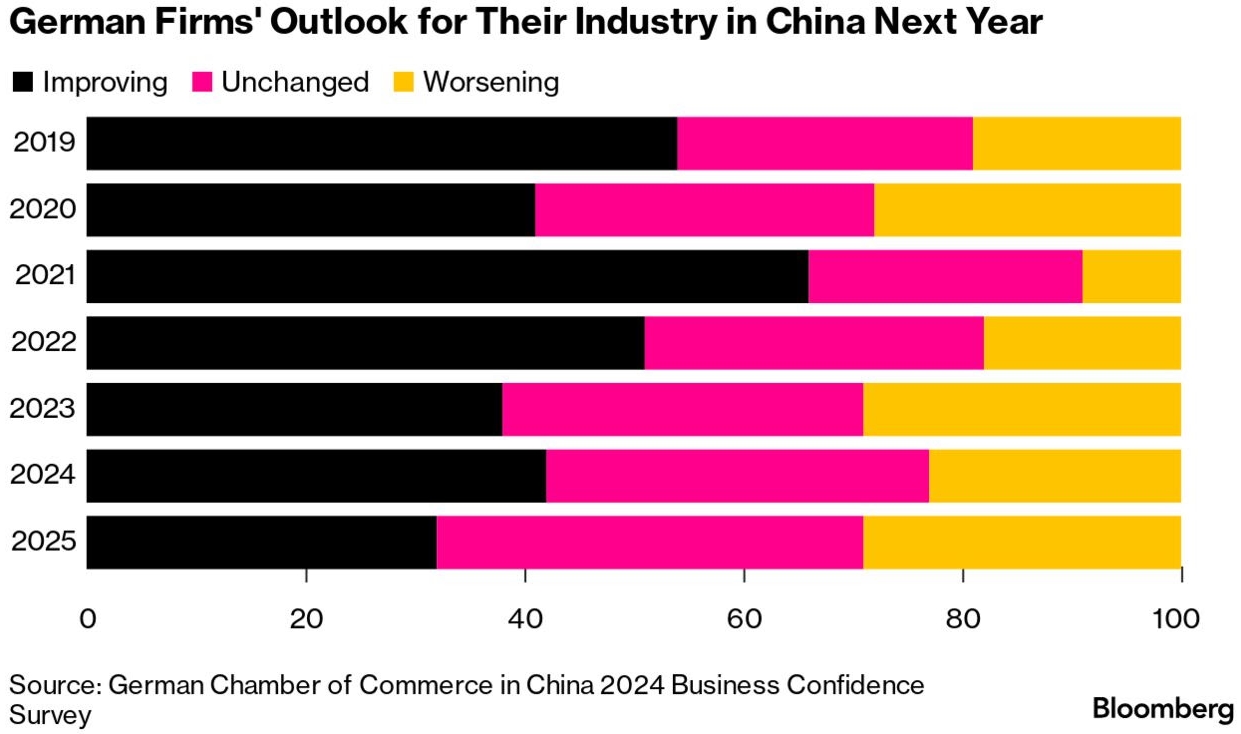 두 개의 새로운 설문조사에 따르면 '중국' 내 '영국'과 독일 기업들은 비즈니스에 '어려움'을 겪고 있으며 내년 전망에 대해 우려하고 있습니다. 지난 12개월 동안 '영국' 기업의 약 58%가 아시아 국가에서 사업을 운영하는 것이 더 어렵다고 답했으며, 중국 주재 독일 '상공회의소'의 별도 설문조사에 따르면 2025년에는 3분의 1 미만의 기업이 자국 산업에 대해 낙관적이라고 답해 신저가를 경신했습니다.
