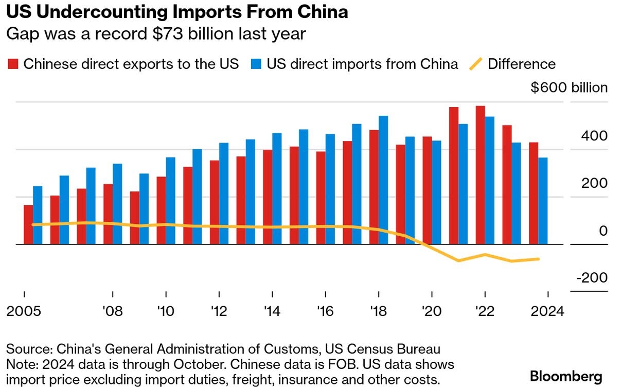 '트럼프'는 다음 달 취임하자마자 중국으로부터의 모든 수입품에 10%의 보편 관세를 부과하겠다고 공언했습니다. 그러나 수백억 달러 상당의 상품이 중국에서 실제로 얼마나 많이 수입되는지에 대한 과소 집계로 인해 이러한 수입세를 피할 수 있는 '허점'이 있기 때문에 완전히 달성하기는 어려울 수 있습니다.