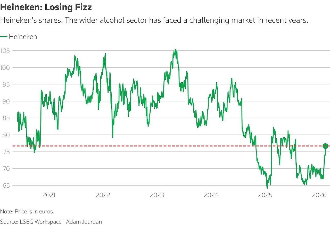 세계 2위 맥주 회사인 하이네켄(Heineken)은 가격 상승과 소비자의 음주량 감소로 촉발된 업계 전반의 압박에 따른 맥주 '수요 부진'에 대응하기 위해 전 세계 직원의 약 7%에 해당하는 최대 6,000명을 감원하고 2026년 수익 전망치를 하향 조정했다고 밝혔습니다. 테카테(Tecate)와 암스텔(Amstel) 브랜드를 생산하는 '네덜란드' 맥주업체 하이네켄은 수요일, 전 세계 8만 7천 명의 직원 중 5천~6천 명(대부분 유럽 지역)을 감원할 것이라고 발표했습니다. 또한 2025년 맥주 판매량이 2.4% 감소할 것으로 예상되지만, 이는 애널리스트들의 예상치보다 약간 낮은 수치라고 밝혔습니다. 스위스 시계 제조업체 '스와치'는 수년간의 수익 감소세를 반전시키고 투자자 신뢰를 회복하려면 혁신을 되살리고, 브랜드 포트폴리오를 간소화하며, 지배구조를 개편해야 합니다.